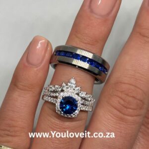 The 2.00 ct. Sterling Silver Tiara 8mm Sapphire Round-Inlay Oval Cut Wedding Ring Set