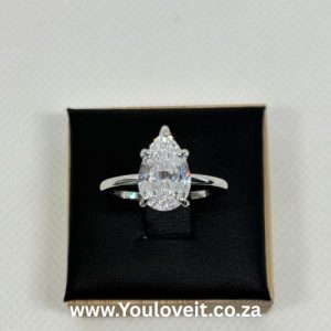 The Sterling Silver 5 Prong 3.00 ct. Pear Cut Solitaire Engagement Ring Set On A Solid Band