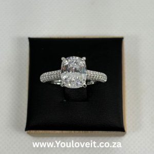 The Sterling Silver 3.00 ct. Elongated Cushion Cut Pavé Band Engagement Ring