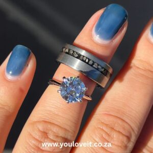 The 2.00 ct. Sterling Silver Sapphire Tiara Carbon Fiber Indigo Oval Cut Wedding Ring Set