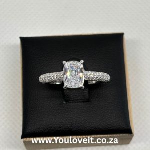 The Sterling Silver 1.75 ct. Elongated Cushion Cut Pavé Band Engagement Ring
