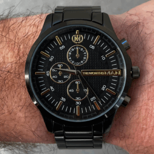 (Free Back Engraving) The Stainless Steel Black Initial Men’s Watch