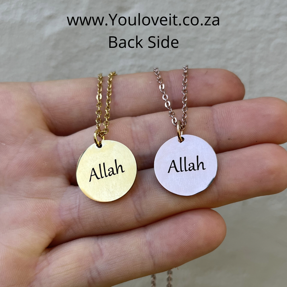 - “Allah” engraved in the Arabic language, a deeply meaningful piece of Islamic jewelry.
