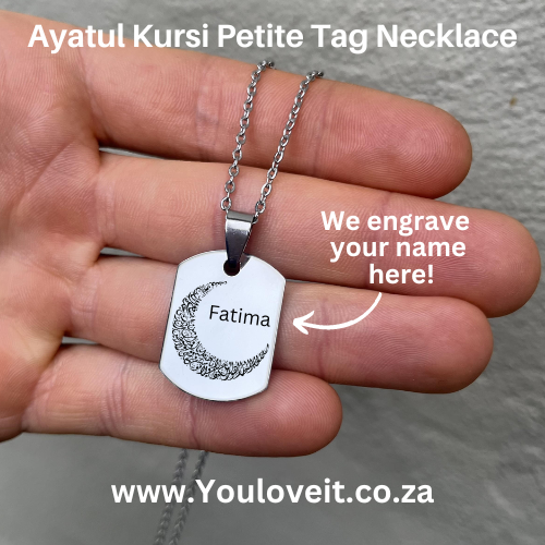 Ayatul Kursi Crescent Petite Tag Necklace (Free Name Engraving)