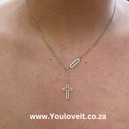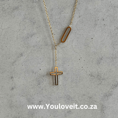 Gold Stainless Steel Open Cross Necklace