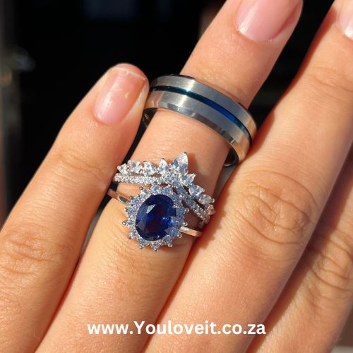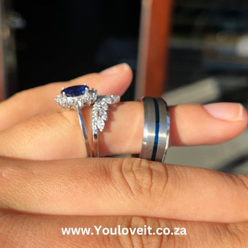 • Female ring = Sterling Silver (main ring + 1 wedding band)