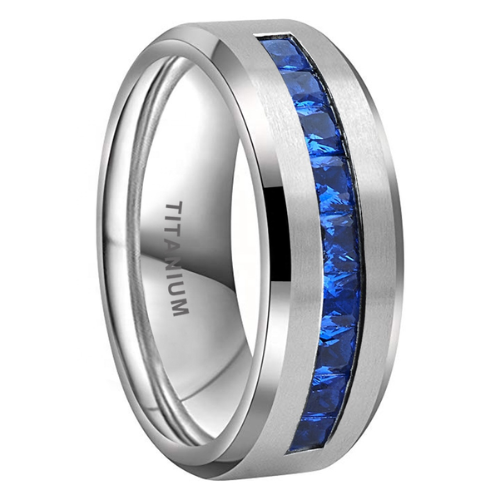 The 8mm Sapphire Square-Inlay Titanium Ring