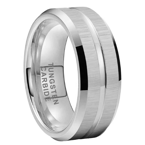 The 8mm Silver-Ray Grooved Beveled Edge Tungsten Carbide Ring