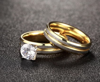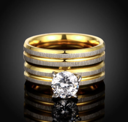 The Stainless Steel Double Line Full Gold Plated Two Piece Wedding Set