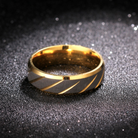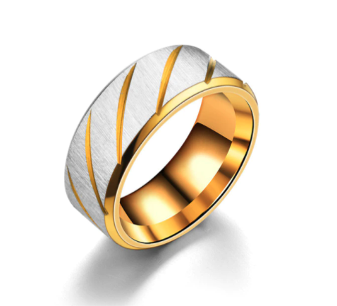 The Stainless Steel Slanted Gold Line Ring