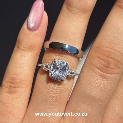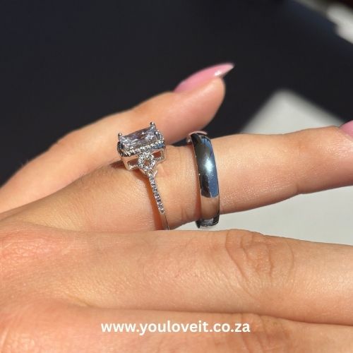 • The female ring is S925 Sterling Silver – The stones are clear / white