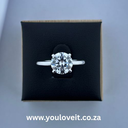 • This gorgeous solitaire engagement ring features a stunning 2.50 ct round-cut iced CZ as the centre stone. It features a solid band, making it all the more elegant and timeless.