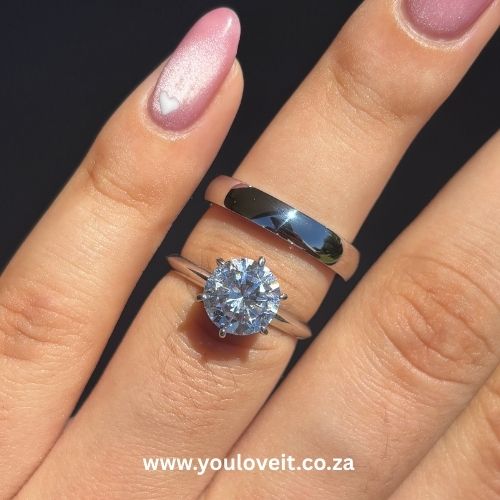 • The female ring is S925 Sterling Silver – The stones are clear / white