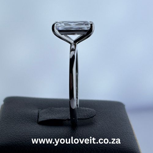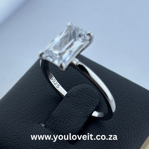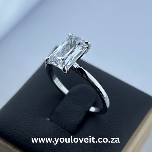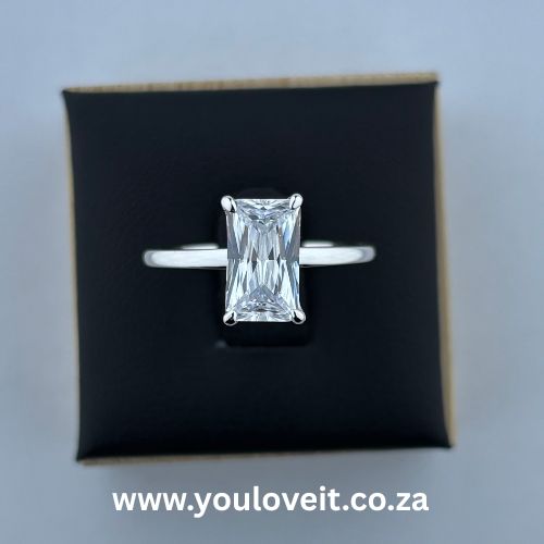 - This gorgeous solitaire engagement ring features a stunning 3.30 ct elongated radiant-cut iced CZ as the centre stone. It features a solid band, making it all the more elegant and timeless.
