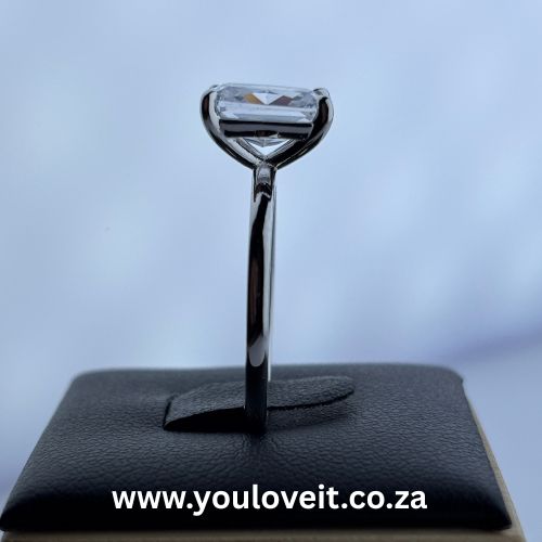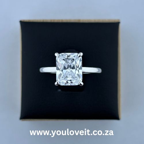 - This gorgeous solitaire engagement ring features a stunning 3.50 ct radiant-cut iced CZ as the centre stone. It features a solid band, making it all the more elegant and timeless.