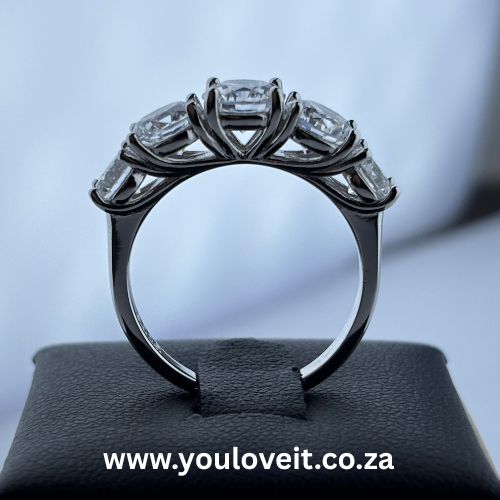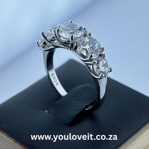 The Sterling Silver 5 Stone Round Cut Engagement Ring