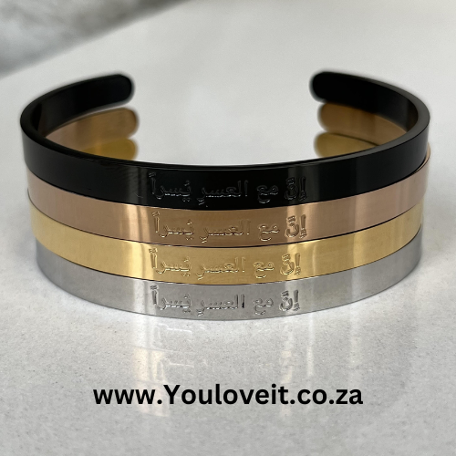 “Verily, with hardship comes ease” Cuff Bangle (Free Name Engraving)
